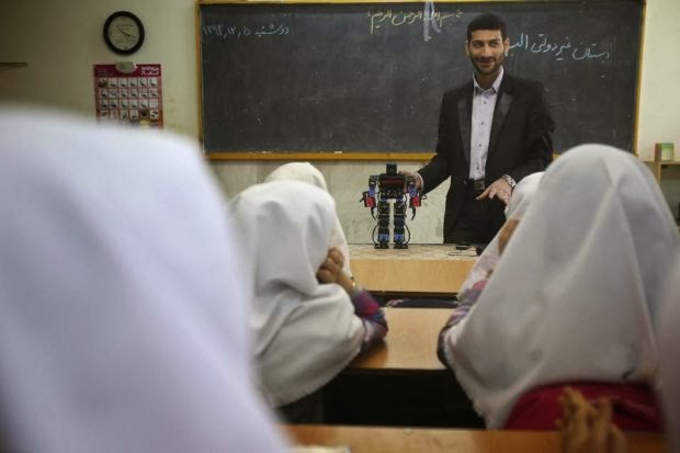 Guru cipta robot tunjuk cara bersolat di Iran | Seorang guru mengajar al-Quran di sebuah sekolah rendah di bandar Varamin di Iran, 35 kilometer dari sini mencipta sebuah robot kecil yang menunjukkan cara untuk bersolat kepada kanak-kanak. Guru berkenaan Akbar Rezaie, 27, mendapat idea untuk mencipta robot berkenaan selepas melihat kanak-kanak terlalu asyik bermain dengan patung import yang boleh menyanyi dan menari.