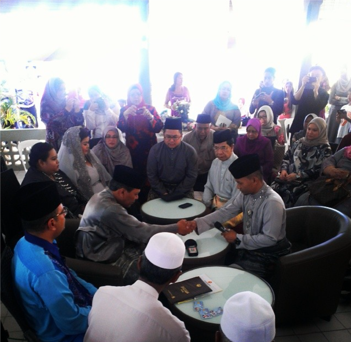 6 Gambar majlis akad nikah pelakon Syanie dan suami, Nadi Putera Mohammad Zainol | Pelakon komedi wanita Syanie Hisham, 39, sah bergelar isteri kepada Nadi Putera Mohammad Zainol, 27, dengan sekali lafaz pada majlis akad nikah yang berlangsung di Sandy Beach Resort, di sini, pagi ini.
